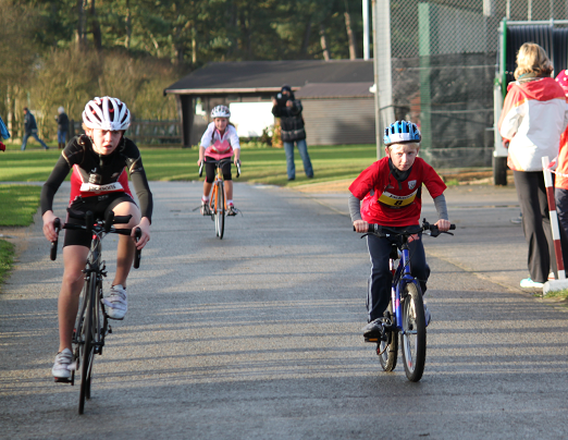 (24/11/12)What a fantastic turnout for this morning's duathlon, with a huge number of new faces to keep the timekeepers on their toes. Despite a very damp outlook a total of 29 athletes took to the start line with a fantastic 17 of them in the under 10 age group. The under 10s tackled a course of 1000m run, 3km cycle and 1500m run to finish with the 10 and overs having to complete a 1500m run, 4.5km cycle and a final 1500m run.